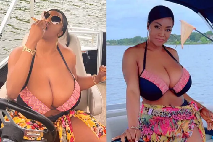 Nollywood star and influencer, Mimi Ubini also stunned her followers on social media with the eye-catching photos she posted. Mimi can be seen having a good time on a boat while rocking a cute bikini top and a colorful tied skirt.