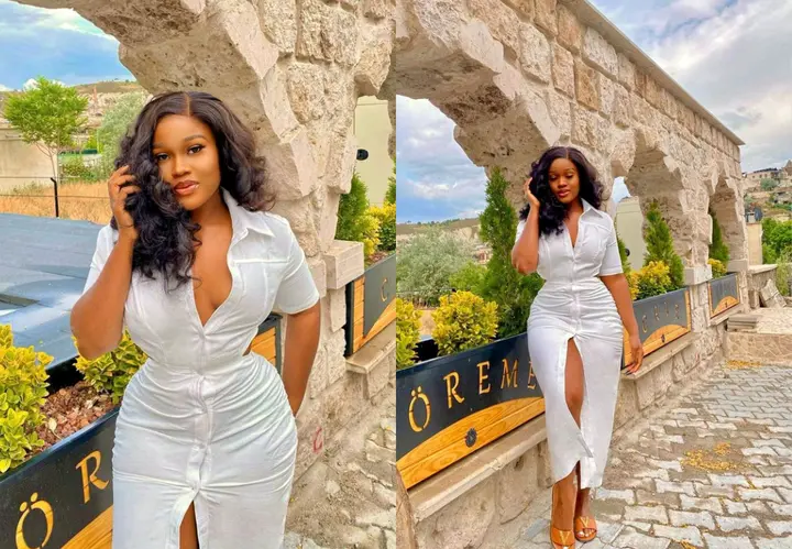 Big Brother Naija star, Cee Cee looks stunning in the photos she shared on social media recently. The former BBNaija housemate can be seen rocking a white buttoned split dress that looks gorgeous on her.