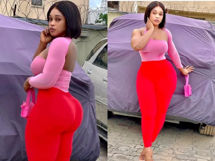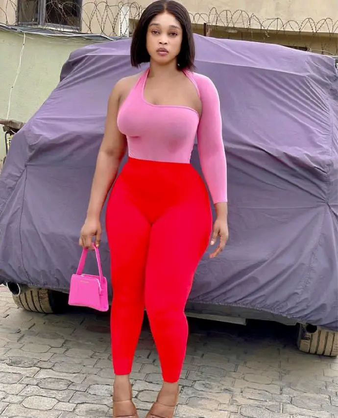 Nigerian movie star and influencer, Chidinma Agunobi also uploaded new photos of herself online recently, she was dressed up in a chic, pink one sleeved top and red leggings.