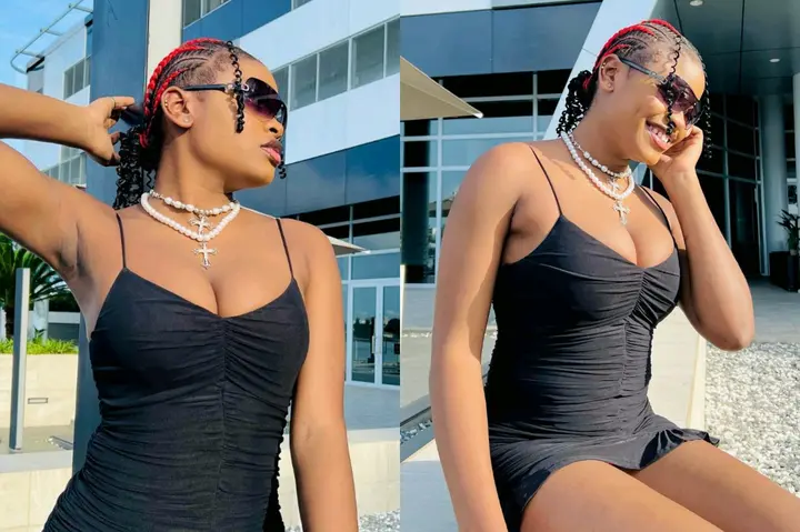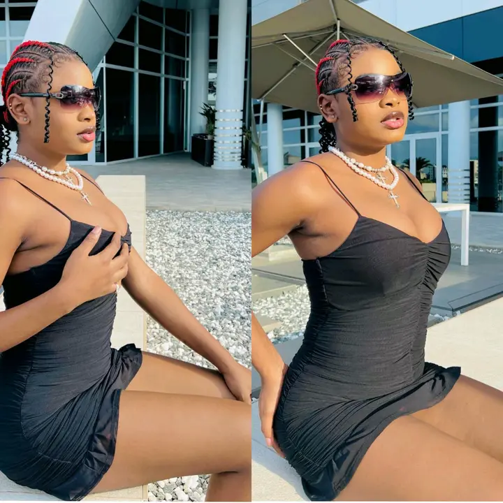The sister of famous Nigerian singer and songwriter, Naira Marley, brand ambassador and influencer, Shubomi stunned her fans on her official Instagram page with her new photos, she appeared dressed up in a black sleeveless dress and braided hair.