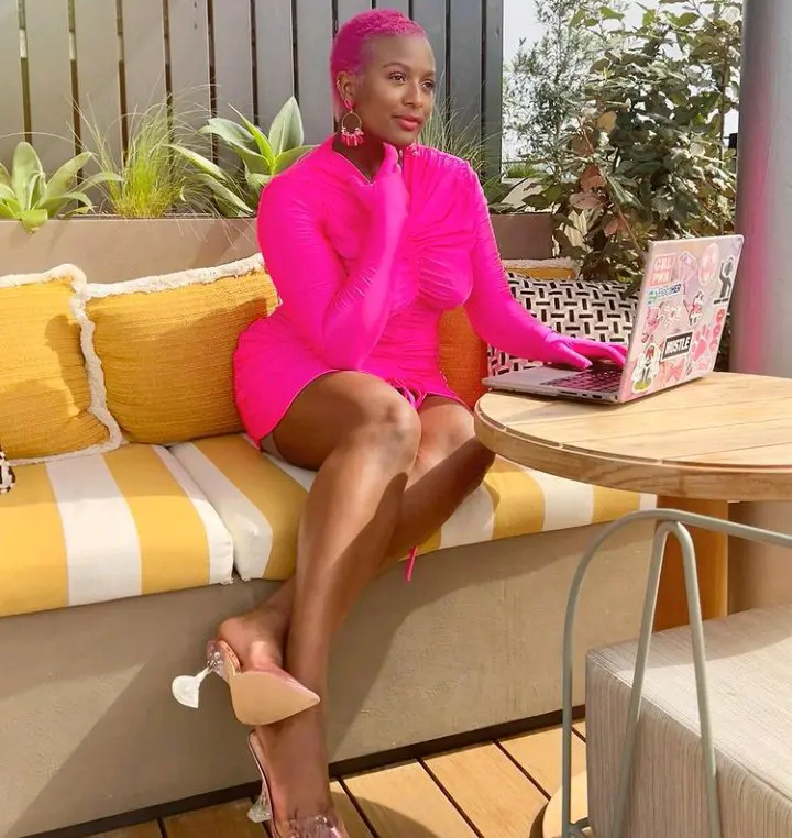 Florence Otedola or DJ Cuppy as she's popularly known also made a post recently on social media, she has always been open about her love for the color pink which is what inspired her attire in this picture, she can be seen rocking a pink hair, earrings and a pink bodycon gown.