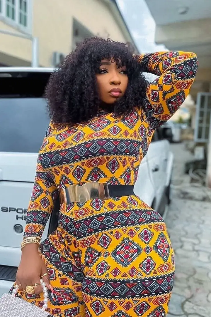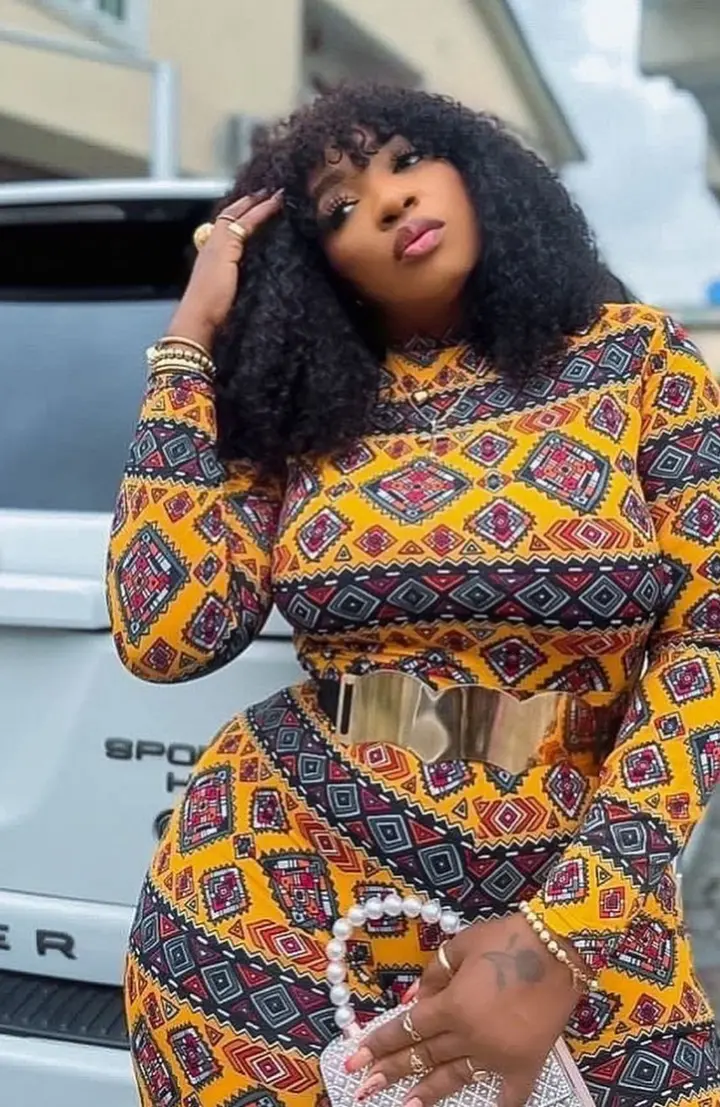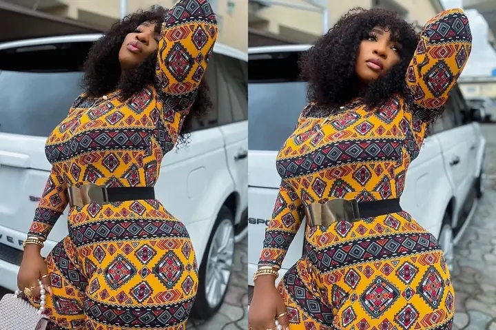 The film star recently dazzled her followers on Instagram after she released some eye-catching photos of herself on her verified account, she can be seen posing behind her luxurious whip while dressed up in a beautiful multicolored Ankara jumpsuit and rocking short curly hair.