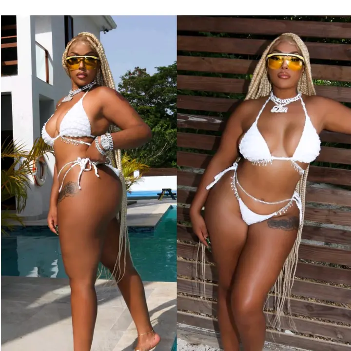 The ex girlfriend of famous Afrobeat musician, Burna Boy and popular British singer, Stefflon Don became the talk of the town after she released a diss track about her relationship with Burna Boy and she recently stirred reactions again on social media after she dropped some eye-catching photos on her page. Stefflon showed off her curves dressed up in a chic two piece swim wear.
