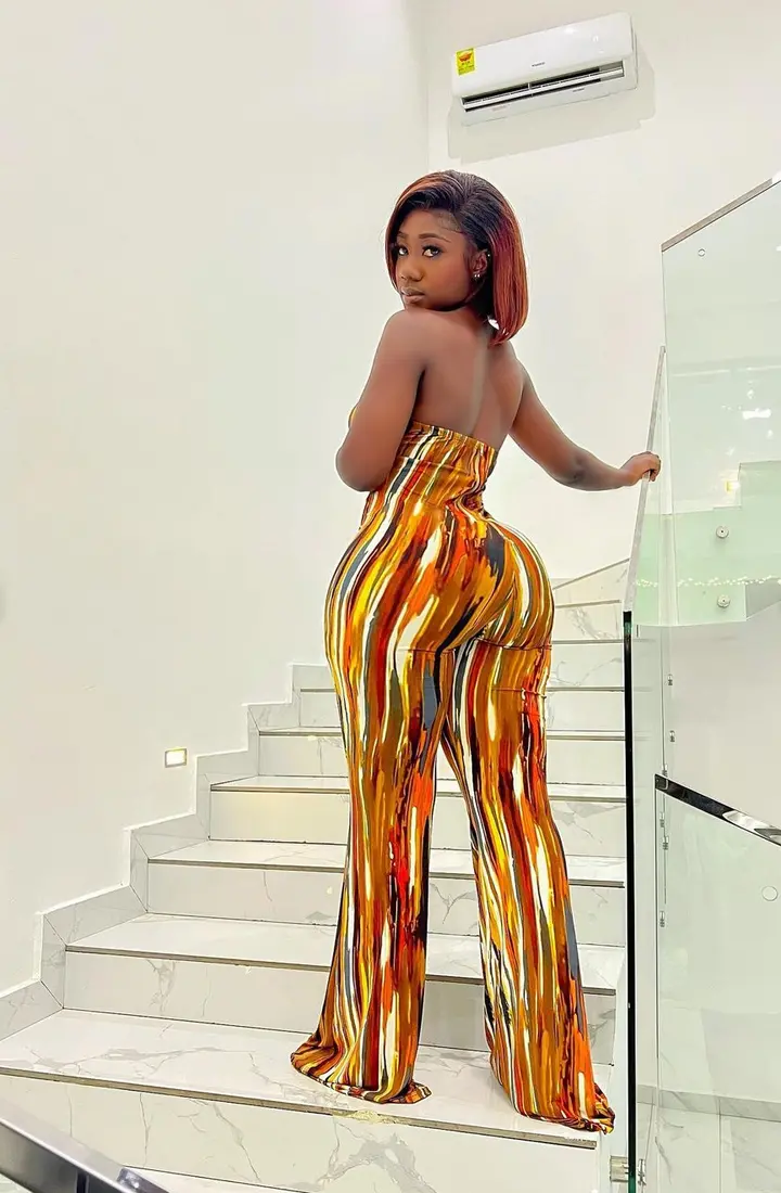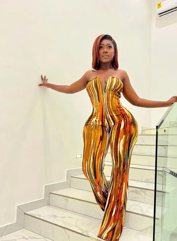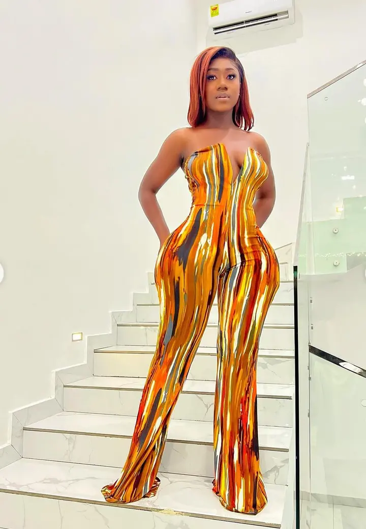 Hajia Bintu stunned fans following her page on Instagram recently with photos she shared with them, she appeared dressed up in a colorful one piece outfit that shows off her curves and shape.