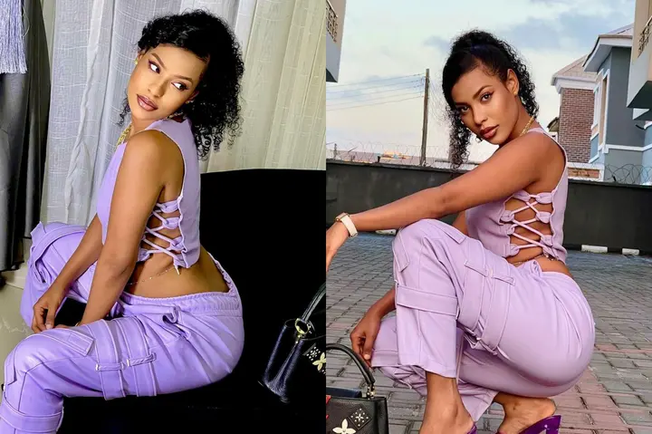 Nini Singh stirred reactions on social media earlier today after she uploaded some cute photos of herself on her verified Instagram account, she looked breathtaking as usual as she appeared in a stylish purple crop top and matching slacks with dark purple heels and handbag.