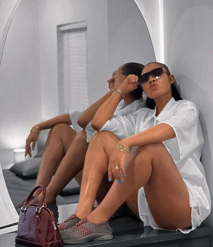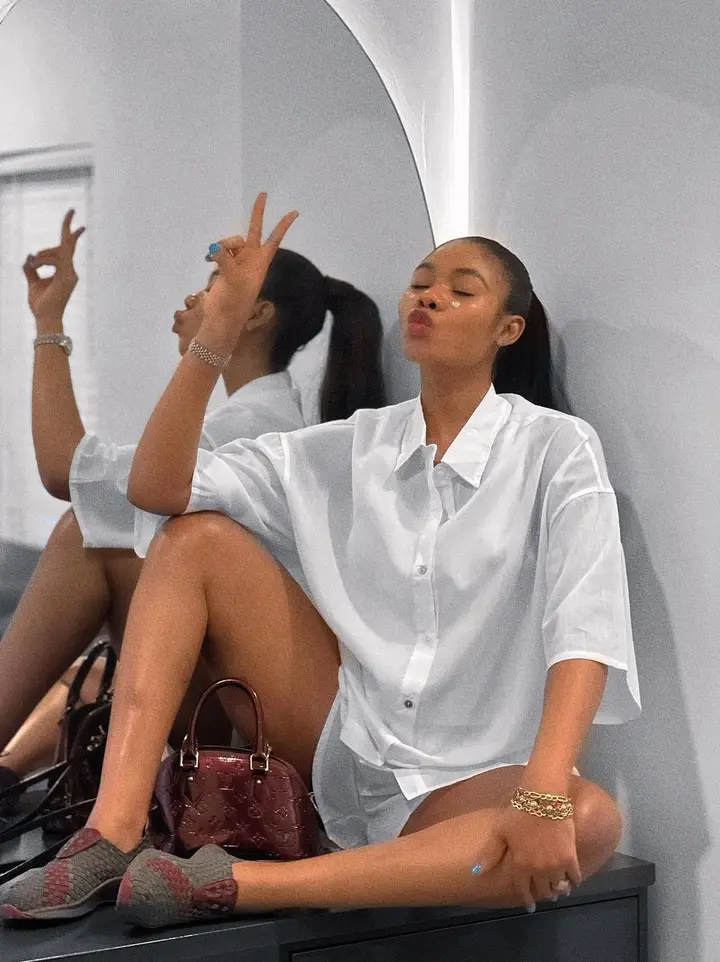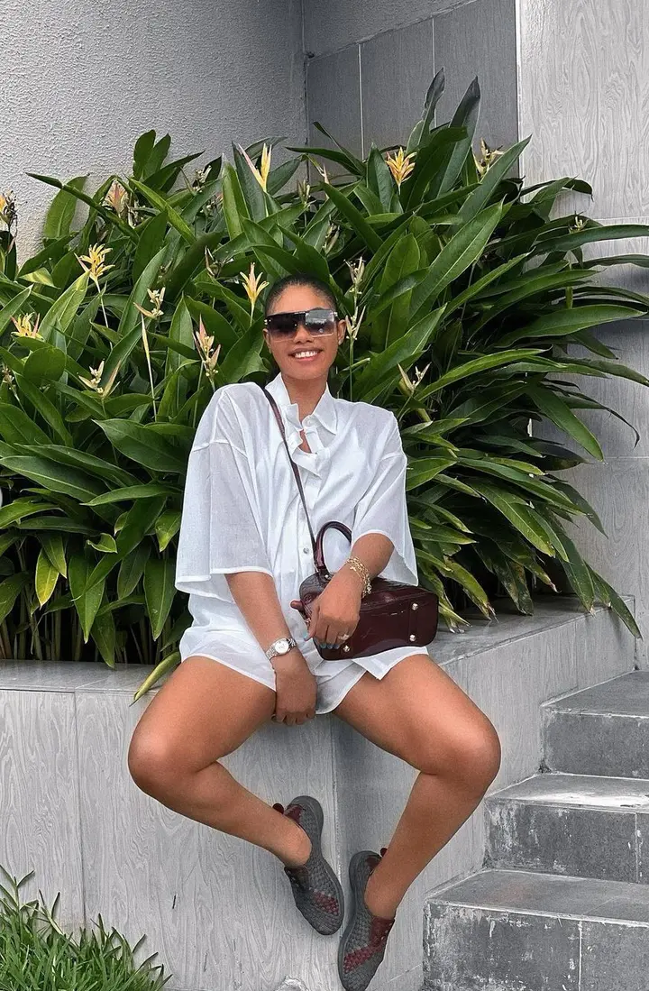Janemena stirred reactions online earlier today after she shared some photos of herself on her official page, she can be seen in the post slaying in a buttoned white shirt and matching white shorts.