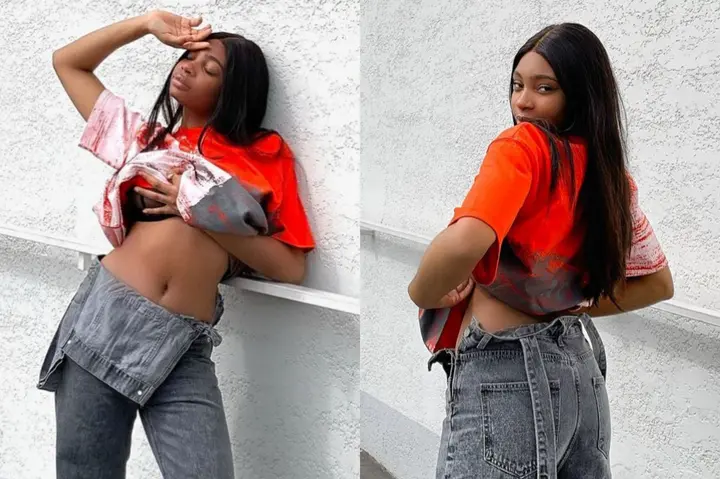 Susan Pwajok released new stunning photos of herself on her official Instagram page earlier today and as usual, she looked ravishing, she can be seen dressed up in an unbuttoned jean overall, a t-shirt and orange sneakers.