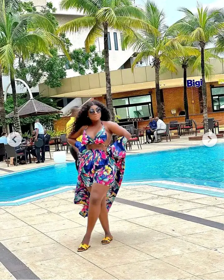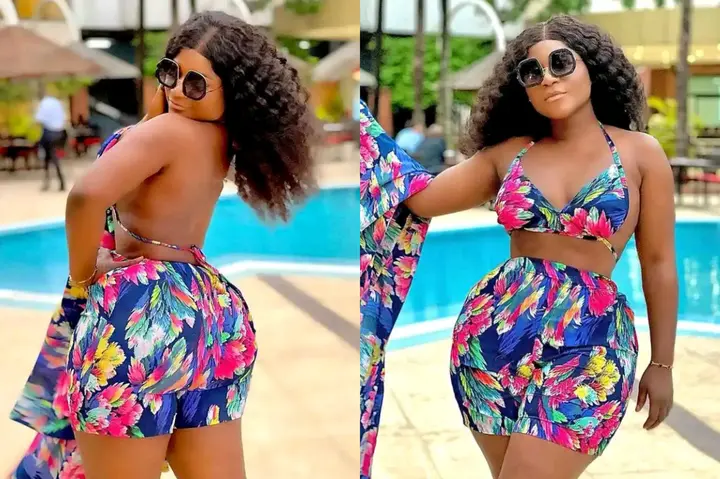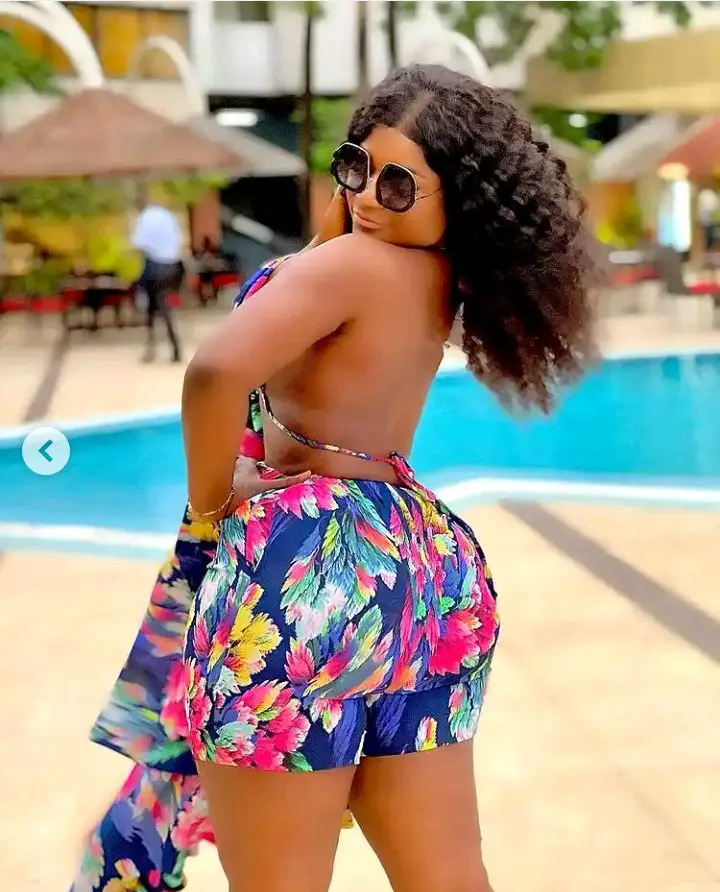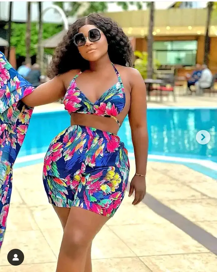 Destiny Etiko is also undoubtedly one of the most fashionable women in the entertainment industry, she proves this everytime with the posts she shares frequently on social media. The Nollywood star released new photos of herself on her official Instagram page recently and she looked gorgeous as always, she can be seen slaying in a stylish multi-colored outfit while posing in front of a pool.