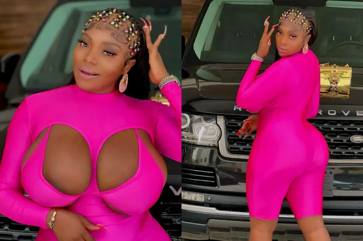 Popular socialite who goes by the name, Boss Mother is another social media influencer who recently shared lovely pictures on Instagram, she looked absolutely stunning as she flaunted her beauty in a pink, one piece, bodycon attire.