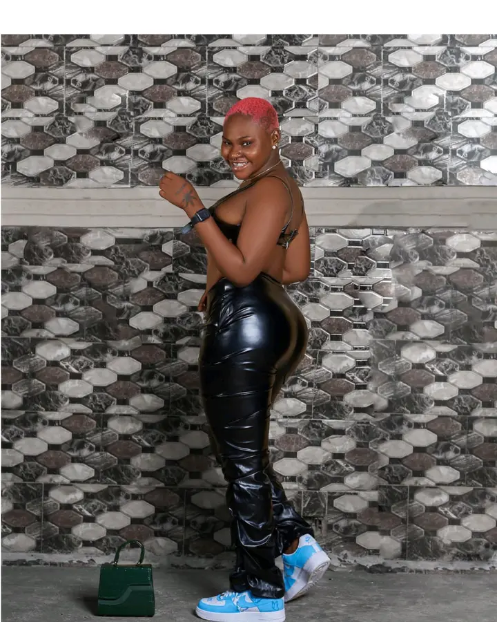 Nigerian socialite and brand ambassador, Mandy Kiss stirred up reactions on social media as she drops beautiful pictures of herself on her official Instagram page. The influencer grabbed the attention of her followers with her cute outfit, she wore a black top, black trousers and a pair of blue sneakers.