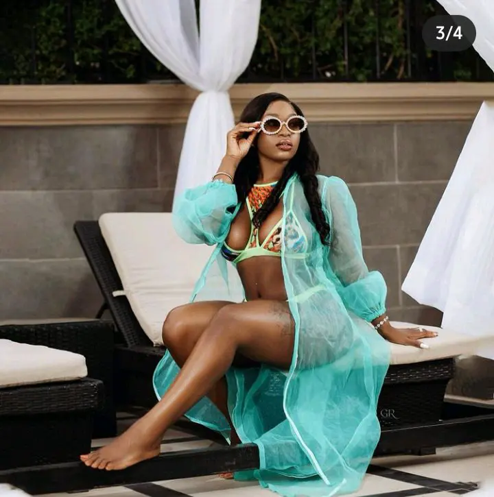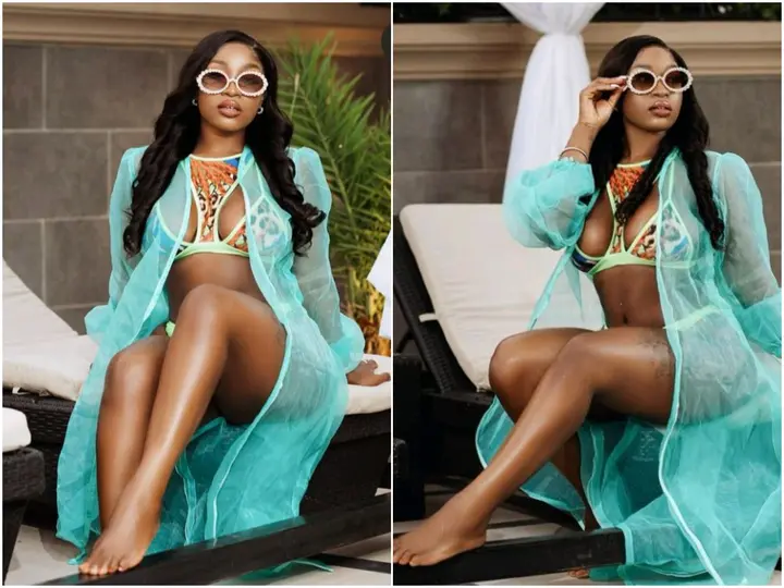 Big Brother Naija former housemate, Jackie Bent shared some eye-catching photos of herself looking stunning in a chic outfit recently. The reality TV star can be seen having a nice time while dressed up in a cute two-piece bikini and a see through robe