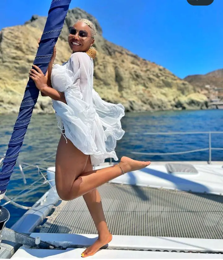 Nigerian television personality, actress, model and brand ambassador, Nancy Isime also posted lovely photos on social media earlier, she traveled out of the country on vacation recently and she has been sharing pictures of herself exploring different places with her fans. The movie star can be seen having a nice time on a yacht while rocking a one-piece swimsuit and a see through shirt.