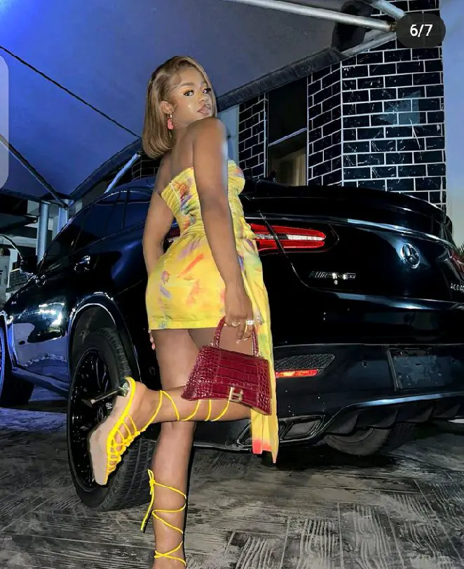 Popular Nigerian influencer, brand ambassador and daughter of Iyabo Ojo, Priscilla Ojo shared a couple of eye-catching pictures of herself on Instagram earlier and as usual, she got the attention of many internet users, she wore a cute bodycon gown that looks adorable on her.