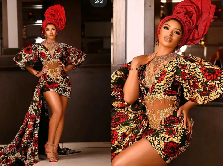 Liquorose is another beautiful Big Brother Naija former housemate on the list, she went all native in these pictures she released, she wore a fashionable Ankara dress and a stunning head tie.