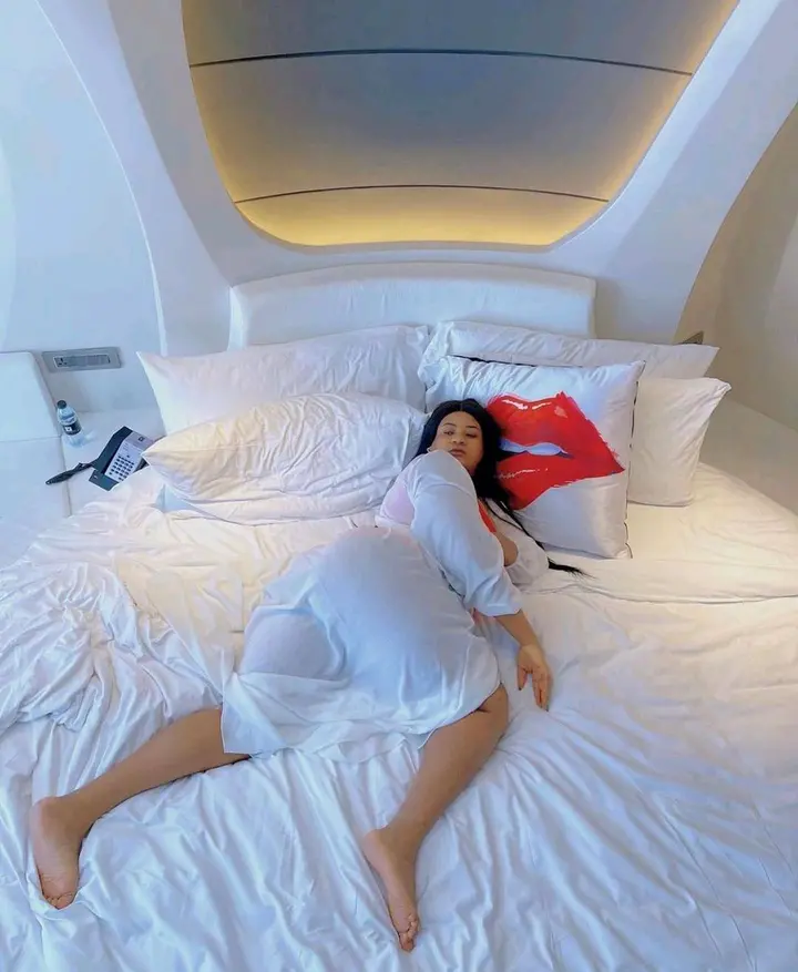 Nollywood actress, Nkechi Blessing caused a stir online with the eye-catching pictures of herself she uploaded earlier, she can be seen laying down on a bed while dressed in an all white nightgown.