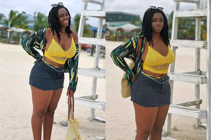 Popular Nigerian influencer and model, Ifedioku wowed her followers on Instagram with some recent photos she uploaded on her official page, she looked stunning as always as she effortlessly rocked a long sleeved shirt, a string top and a mini skirt while having a nice time at the beach.