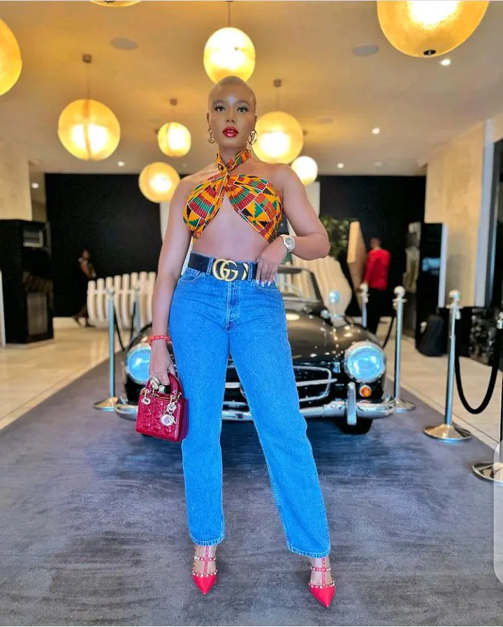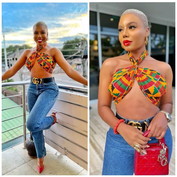 Nollywood actress, model and popular Tv host, Nancy Isime also stirred reactions online recently with photos she uploaded on her official Instagram page. The actress can be seen dressed up in a stylishly designed native top and blue jeans, she also carried a red bag and matched it with red heels.