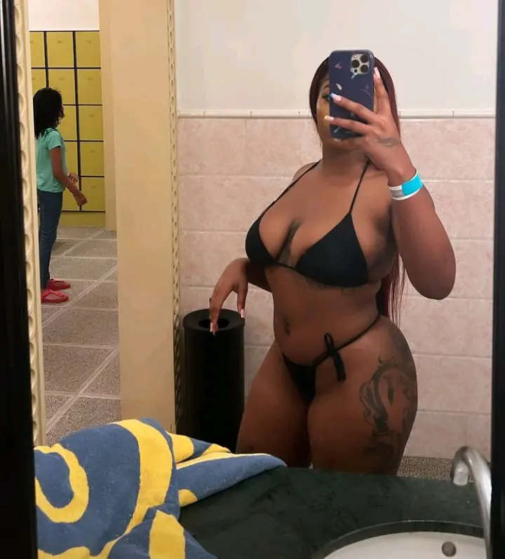 Nigerian reality TV star and social media influencer, Angel Smith wowed fans on her Instagram page earlier today with some eye-catching photos of herself she uploaded, she showed fans just how fashionable she is with the stunning outfit she wore. Angel can be seen stylishly rocking a cute, black, two piece swim wear.